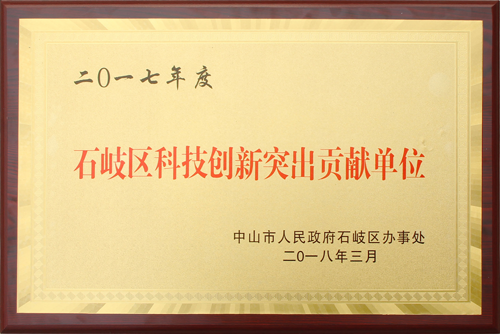 2017年度石岐區(qū)科技創(chuàng)新突出貢獻(xiàn)單位