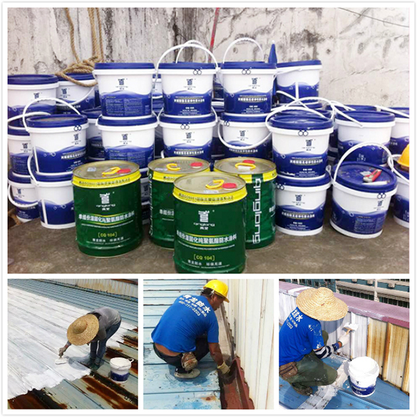 青龍公司中山經銷商張總成功承接了這一防水補漏工程。經過實地仔細檢查,并經與客戶詳細協(xié)商,最后敲定采用青龍公司CQ103丙烯酸酯高級彈性防水涂料和CQ104單組份濕固化純聚氨酯防水涂料的組合補漏方案。青龍CQ103丙烯酸酯防水涂料具有良好的耐老化、延伸性、粘結性、成膜性及耐高溫性,因此非常適合在鐵皮房屋頂作整體涂刷;而屋頂排水溝則采用CQ104單組份濕固化純聚氨酯防水涂料。