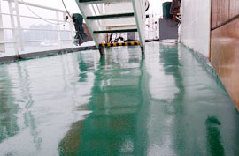 接到該訂單后,公司派一支素質(zhì)過硬的施工隊伍奔赴香港開始作業(yè),由于期間香港天氣變化反復,時常下雨;待基面底漆頑固,銹跡斑斑難以清理,均為凹凸不平的麻面;再加上該郵輪白天需正常營業(yè),施工多只能在晚上進行,等等一系列因素都給施工帶來了嚴峻考驗。青龍公司歷來重視每一筆訂,注重每一個細節(jié),董事長宋敦清先生得知后,親自前往,與公司總工徐新生論證了一個最佳方案后開始指導施工,考慮到施工部位特殊,長期在海面上風吹日曬,最后選用了其耐候、耐酸堿、耐紫外線、耐老化、耐霉菌、耐鹽霧、耐臭氧、耐溶劑、耐磨、耐沖擊和耐油性等綜合性能優(yōu)異的CQ101防水密封涂料。先用特殊纖維填充10mm高度,再在上面找平3mm厚,然后用青龍CQ101防水密封涂料自流平成膜。經(jīng)過一個星期的艱苦奮戰(zhàn),順利完成施工。