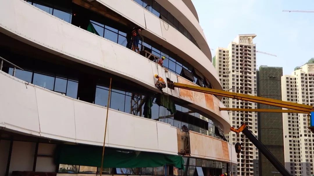 青龍公司作為國內(nèi)GRC領(lǐng)域的知名企業(yè),承接了新媒體中心三座主體結(jié)構(gòu)的雙曲面外墻板項(xiàng)目。由于所有的面板沒有一片完全相同,不僅要經(jīng)受高空風(fēng)雨的侵蝕,相鄰兩塊更要緊密榫合,天衣無縫,并在整體上形成流線性美感,因此需要制作大量的模具,工程極為繁瑣。但青龍GRC團(tuán)隊(duì)克服重重困難,從圖紙深化設(shè)計(jì)、彩色GRC選材、造型產(chǎn)品生產(chǎn)到安裝施工等一系列工序中都做到極致,讓甲方和監(jiān)理都非常滿意。