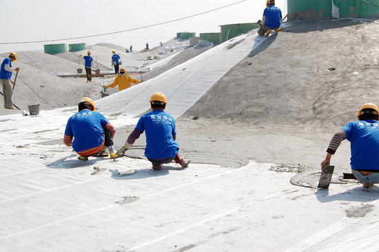 由于項(xiàng)目的重要性,建設(shè)方對(duì)時(shí)間和質(zhì)量提出了高標(biāo)準(zhǔn)、嚴(yán)要求,不但要求材料優(yōu)良,技術(shù)過(guò)硬,而且必須具有快速施工的能力。10月份,偏逢海南遭遇歷史罕見(jiàn)暴雨,無(wú)法正常施工,給青龍公司帶來(lái)了最為嚴(yán)峻的考驗(yàn)。為了確保工程如期完成,青龍公司擴(kuò)大施工隊(duì)伍,120余名建設(shè)者加班加點(diǎn),堅(jiān)守崗位,全力以赴,打造好的細(xì)節(jié)。從成品出庫(kù)、物流、施工、檢驗(yàn)、后勤保障等,每一個(gè)細(xì)節(jié)爭(zhēng)分奪秒。在青龍人的精心操作和不懈努力下,工程如期完成,10萬(wàn)平方米的保溫層已順利通過(guò)驗(yàn)收,工程質(zhì)量監(jiān)督負(fù)責(zé)人和市級(jí)領(lǐng)導(dǎo)多次考察,對(duì)青龍能在如此巨大壓力下的超常施工能力表示贊嘆。目前正在進(jìn)行防水抗裂層及屋頂GRC工程安裝,預(yù)期春節(jié)前完工。