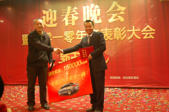 練祖耀(圖右),男,27歲,2009年9月加入青龍營銷團(tuán)隊(duì),經(jīng)過自己勤奮學(xué)習(xí),積極進(jìn)取,2010年個(gè)人業(yè)績榮膺榜首,獲青龍"優(yōu)秀業(yè)務(wù)員"稱號(hào),年終青龍董事長宋敦清先生(圖左)獎(jiǎng)其現(xiàn)金15萬和價(jià)值10萬元小車一輛。