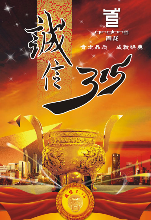 為此,在“3.15國(guó)際消費(fèi)者權(quán)益日”來(lái)臨之際,青龍公司率先在行業(yè)中宣言:牢固樹(shù)立誠(chéng)信經(jīng)營(yíng)理念;嚴(yán)格執(zhí)行質(zhì)量管理體系;不斷完善售后服務(wù)制度;加強(qiáng)商業(yè)職業(yè)道德,維護(hù)市場(chǎng)價(jià)格秩序;積極承擔(dān)社會(huì)責(zé)任,做誠(chéng)信經(jīng)營(yíng)的楷模。讓廣大消費(fèi)者在一個(gè)價(jià)格公平、誠(chéng)信的環(huán)境中消費(fèi),自身的權(quán)益不受傷害。