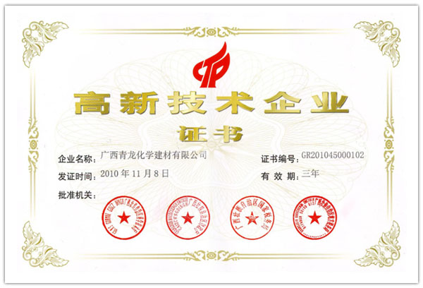 近日,廣西青龍國家高新技術(shù)企業(yè)證書已經(jīng)下達。如下圖