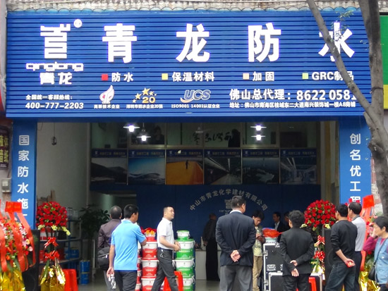 5月4日,伴隨著喜慶的民樂(lè),熱鬧的鑼鼓,位于佛山市南海區(qū)桂城東二大道南興裝飾城一樓A8商鋪的青龍防水佛山總代理專賣店隆重開(kāi)業(yè)。經(jīng)過(guò)精心的裝修,藍(lán)底白字的“青龍防水”門牌顯得格外顯眼,而店前的花籃也為開(kāi)業(yè)慶典增添了節(jié)日的氣氛。青龍建材集團(tuán)董事長(zhǎng)宋敦清、廣東省區(qū)域服務(wù)人員,以及一百多位防水業(yè)界嘉賓到場(chǎng)祝賀。