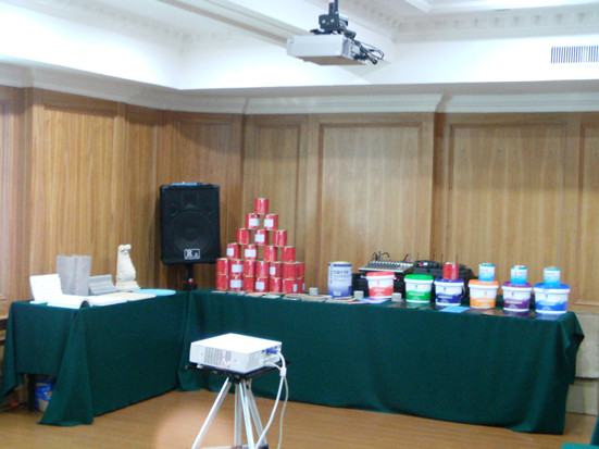 青龍建材集團北京區(qū)域經(jīng)理朱正彬以膠東半島的建材市場的現(xiàn)狀為例,為大家解析了建材行業(yè)未來的發(fā)展前景,并就青龍建材公司“一個品牌,四門生意”的招商加盟政策做了詳細的介紹。福建大區(qū)域經(jīng)理周炳陽工程師則深入地剖析了青龍牌防水涂料、新的型反應交叉膜自粘卷材、EVB高強保溫隔熱板、GRC歐式構(gòu)件等產(chǎn)品的特點及應用,幫助與會者更好地了解青龍建材的主推產(chǎn)品。