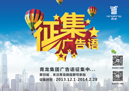 現(xiàn)為了使各地代理商、消費者及社會公眾更加容易理解青龍集團的環(huán)保節(jié)能、社會責(zé)任、誠實守信等文化涵義,建立青龍集團全新品牌形象,現(xiàn)向社會各界征集集團廣告語。歡迎社會各界踴躍參與。