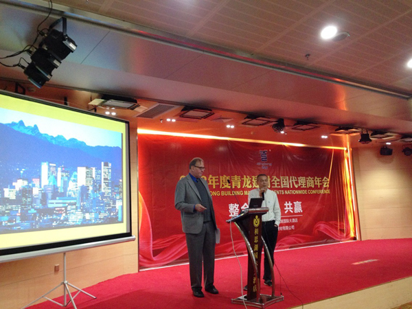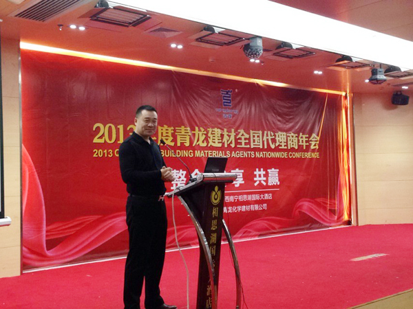 隨后外籍防水專家吉姆,青龍集團工程師羅兆學(xué)先生,外省營銷總監(jiān)王定中先生,網(wǎng)絡(luò)營銷經(jīng)理賀金龍先生分別上臺演講,與廣大代理商交流防水技術(shù),網(wǎng)絡(luò)營銷及2013年銷售,并展望充滿期待的2014年。
