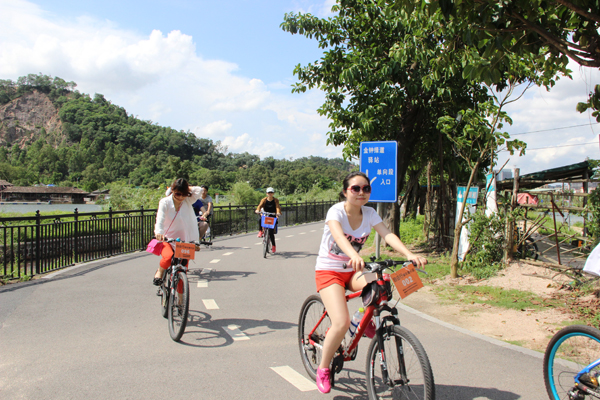 由于當(dāng)天的氣溫比平時(shí)高許多,且太陽當(dāng)照,給騎行的隊(duì)伍增加了不少困難。途中欣賞如詩如畫的田園風(fēng)光,青龍人盡情地呼吸著清新爽朗空氣讓人有酣暢淋漓的感覺。旅途中,愛美的同事還不忘自拍,讓整個(gè)活動(dòng)其樂無窮。金鐘水庫怡人的風(fēng)景深深吸引著我們,也讓我們流連忘返。