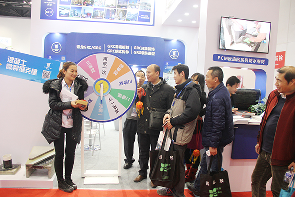青龍展臺(tái)設(shè)計(jì)緊密圍繞當(dāng)前防水前沿"排防結(jié)合、剛?cè)嵯酀?jì)"防水系統(tǒng)治理新理念展開(kāi),明顯位置擺放了青龍受歡迎,也是防水性能好的兩大防水材料CQ101防水涂料和PCM防水卷材,同時(shí)設(shè)計(jì)精致的防水模型讓參會(huì)嘉賓對(duì)青龍防水材料的設(shè)計(jì)及施工直觀,一目了然,方便了客戶對(duì)防水系統(tǒng)的現(xiàn)場(chǎng)體驗(yàn)。青龍專業(yè)技術(shù)員也為嘉賓現(xiàn)場(chǎng)施工演示,解說(shuō),讓參會(huì)嘉賓感受到理論與實(shí)踐的兩重培訓(xùn)。許多參展商專程來(lái)到青龍展位參觀,洽談合作共贏事宜。