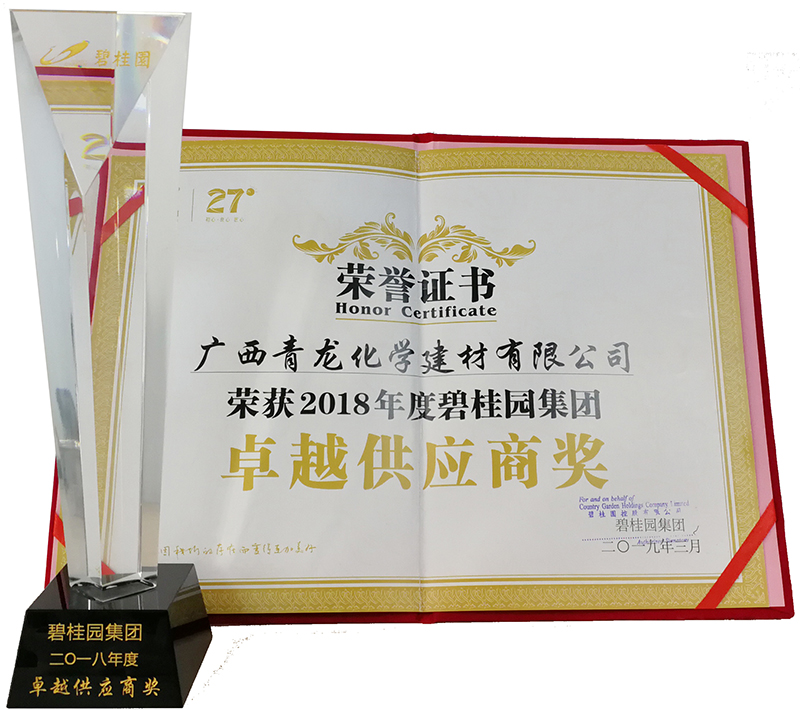 3月,在碧桂園集團2018年度供應(yīng)商大會上,青龍公司憑借過硬的產(chǎn)品質(zhì)量和良好的企業(yè)服務(wù)體系,喜獲2018年度"卓越供應(yīng)商獎"稱號。