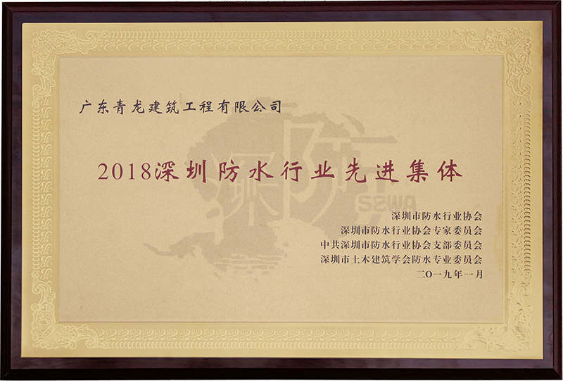 一、獲2018年深圳防水行業(yè)先進集體獎