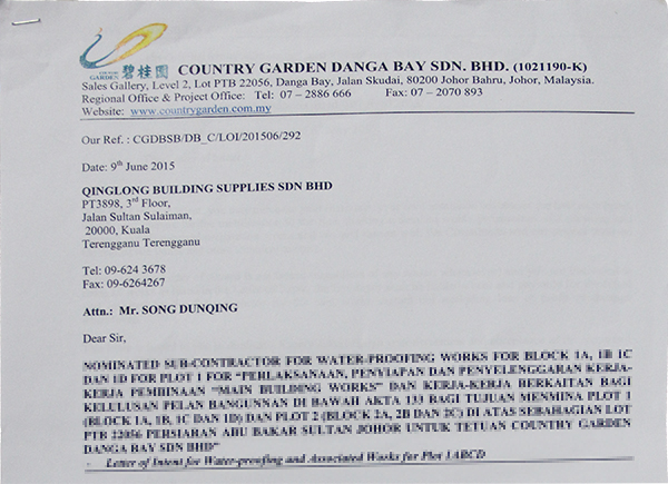 青龍集團(tuán)營銷總監(jiān)賀先生表示,此次競標(biāo)碧桂園馬來西亞金海灣防水項(xiàng)目共有多家防水企業(yè),經(jīng)過激烈角逐,青龍公司與東方雨虹等四家防水企業(yè)最終脫穎而出,且青龍與東方雨虹分別獲得防水面積較大的兩個(gè)項(xiàng)目。該防水項(xiàng)目的最終落實(shí)不僅是青龍集團(tuán)開拓國際市場的又一成功案例,也表明了青龍防水材料防水效果顯著,技術(shù)實(shí)力強(qiáng)勁,得到了國內(nèi)外客戶的高度肯定。