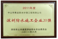 青龍防水補強榮獲“深圳建筑防水企業(yè)20強”, 隔熱保溫防水一體化材料全國領(lǐng)先