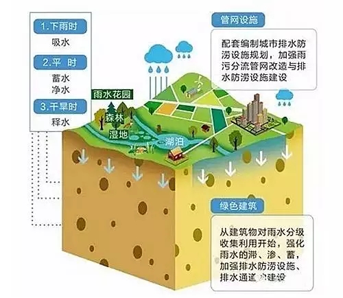 海綿城市是新一代城市雨洪管理概念,是指城市在適應(yīng)環(huán)境變化和應(yīng)對(duì)雨水帶來的自然災(zāi)害等方面具有良好的“彈性”,也可稱之為“水彈性城市”。下雨時(shí)吸水、蓄水、滲水、凈水,需要時(shí)將蓄存的水“釋放”并加以利用。