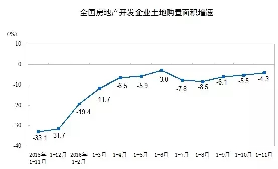 1-11月份,房地產(chǎn)開發(fā)企業(yè)土地購置面積19046萬平方米,同比下降4.3%,土地成交價款7777億元,增長21.4%。