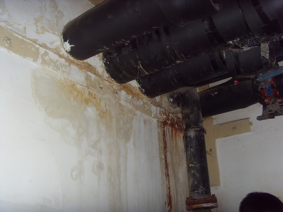 ?。?)穿墻管部位也是外防水薄弱的環(huán)節(jié),如選用卷材處理管根,該部位卷材搭接邊較多,很難做到所有部位搭接滿粘,另外穿墻管周邊混凝土振搗密實(shí)程度不夠,在管根周邊外防水出現(xiàn)問(wèn)題后,就會(huì)從接縫周邊向內(nèi)滲漏。