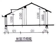 單(多)層建筑物的坡屋頂內(nèi)空間,當(dāng)設(shè)計加以利用時,其凈高超過2.1m的部位應(yīng)計算全面積;凈高在1.2m至2.1m的部位應(yīng)計算1/2面積;凈高不足1.2m的部位不應(yīng)計算面積。設(shè)計不利用時不應(yīng)計算面積。這里我將這種算法簡稱為“凈高界限計算法”。凈高是指樓面或地面至上部樓板(屋面板)底或吊頂?shù)酌嬷g的垂直距離。如圖2:第(1)部分凈高<1.2m,不計算面積;第(2)、(4)部分1.2m≤凈高≤2.1m,計算1/2面積;第(3)部分凈高>2.1m,應(yīng)全部計算面積。