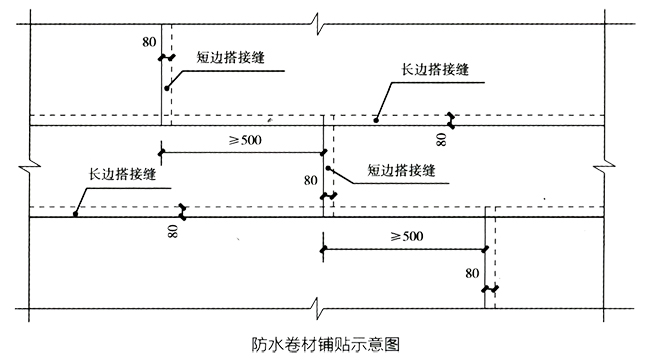 | 規(guī)范標(biāo)準(zhǔn)相關(guān)規(guī)定 | 《屋面工程質(zhì)量驗(yàn)收規(guī)范》GB 50207-2012 6.2.13 卷材的搭接縫應(yīng)黏結(jié)或焊接牢固,密封嚴(yán)密,不得扭曲、皺折和翹邊。 6.2.15 卷材防水層的鋪貼方向應(yīng)正確,卷材搭接寬度的允許偏差為-10mm。 9.0.7 屋面工程觀感質(zhì)量檢查應(yīng)符合下列要求:卷材鋪貼方向正確,搭接縫應(yīng)黏結(jié)或焊接牢固,搭接寬度應(yīng)符合設(shè)計(jì)要求,表面應(yīng)平整,不得有扭曲、皺折和翹邊等缺陷。 |