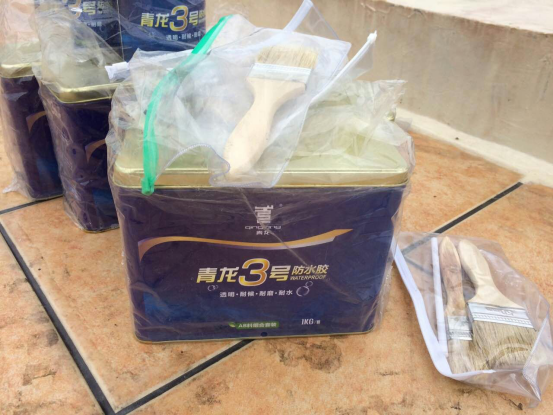 3、用毛刷將青龍3號(hào)防水膠涂刷于墻面,飾面磚接縫處或需要防水的部位;