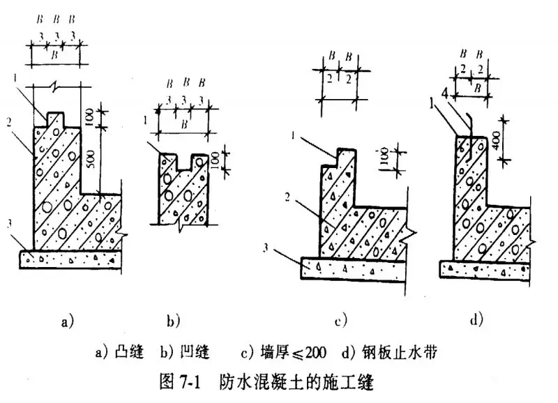 2、混凝土結(jié)構(gòu)的施工縫也是極易發(fā)生滲水的位。防止施工縫部位滲水可采取以下措施:首先施工縫應(yīng)按規(guī)定位置留設(shè),防水薄弱部位及底板上不應(yīng)留設(shè)施工縫,墻板上如必須留設(shè)垂直施工縫時,應(yīng)與變形縫相一致。其次施工縫的留設(shè)、清理及新舊混凝土的接漿等應(yīng)有統(tǒng)一部署,由專人認(rèn)真細(xì)致地做好。還有設(shè)計(jì)人員在確定鋼筋布置位置和墻體厚度時,應(yīng)考慮方便施工,以保證工程質(zhì)量。如發(fā)現(xiàn)施工縫滲水,可采用防水堵漏技術(shù)進(jìn)行修補(bǔ)。