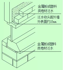 使用金屬或塑料類的材料作為泛水,不讓其進入窗體;窗臺使用金屬板將雨擋在外面。