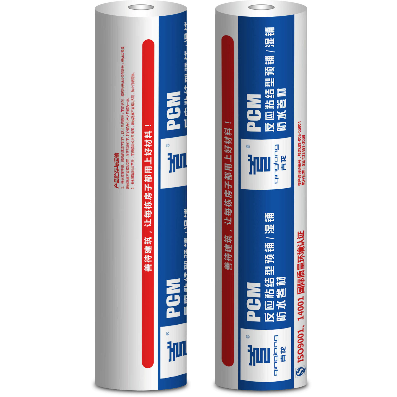 PCM反應(yīng)粘結(jié)型高分子預(yù)鋪防水卷材采用了共聚物樹(shù)脂類高分子(HDPE、LDPE、EVA、PVC、ECB、TPO)等均質(zhì)片材為主體防水層,在其上表面或上下表面涂一層具有蠕變功能得橡膠瀝青自粘材料再覆以硅油防粘隔離膜制成的高分子自粘防水卷材,可以根據(jù)需要在高分子片材上復(fù)合織物加強(qiáng)組成高分子防水卷材。